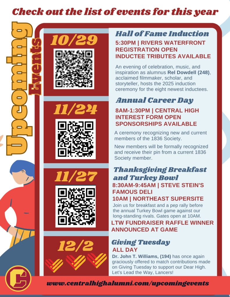 Register to attend Buy an ad! Sponsor a Student Join AACHS for a memorable night honoring our 2025 Inductees! From Central’s classrooms to the world stage, our alumni have left their