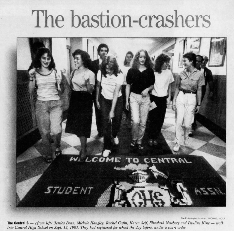 Soon, Liz, Pauline, and Jessie found themselves at the center of a historic moment. They successfully won the lawsuit and were admitted as seniors in the 243rd graduating class alongside classmates Rachel Gafni, Michele Hangley, Nancy Moskoff and Karen Seif.