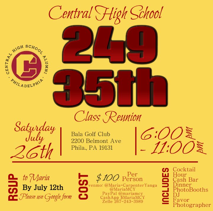 Note: On October 18th, 2025 From 6pm – 10pm please meet at the holiday In on city Ave for 234 Golden Anniversary Reunion Address: Date: 10/18/2025 Location: Central High School 1700 West Olney Avenue Philadelphia, pa 19141 Time: 11:00 AM – 1:30PM