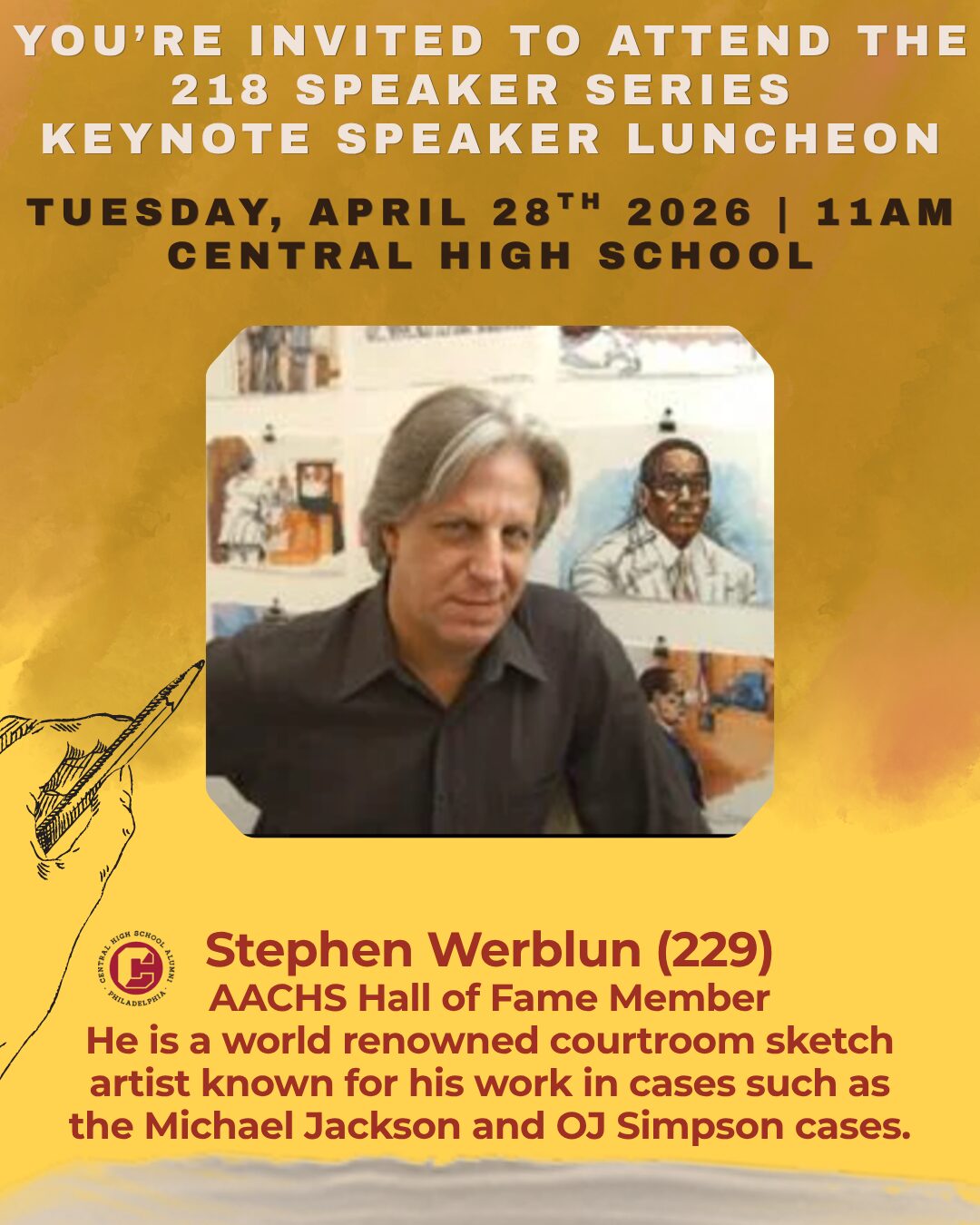 Guests are invited to attend a special luncheon and enjoy an engaging, image-filled presentation as Mr. Werblun reflects on his remarkable career. Attendees will also have the opportunity to view the ten courtroom illustrations being donated to Central.